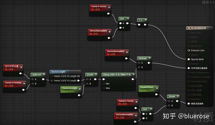 材质我没有仔细调,所以在离模型较远的地方会显得有点“脏”,只需要在Mask与深度偏移添加模型距离的判断来,进行参数调整就完美。